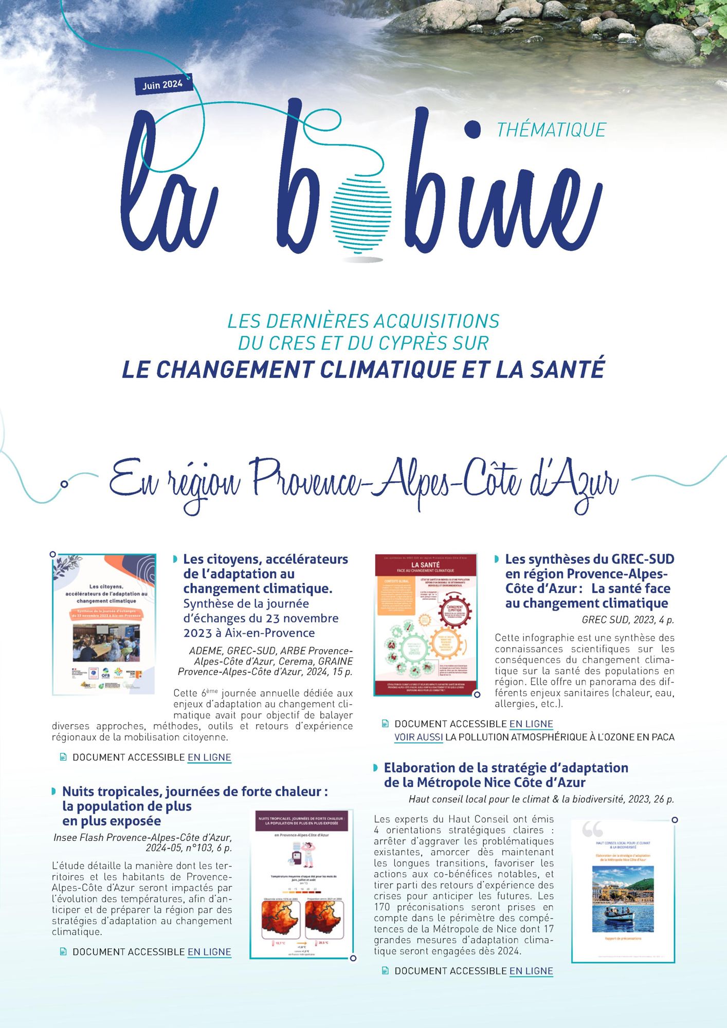 Bobine n° 21 - Changement climatique et santé Juin 2024 Bobine n°21 - Changement climatique et santé (2.8 Mo)