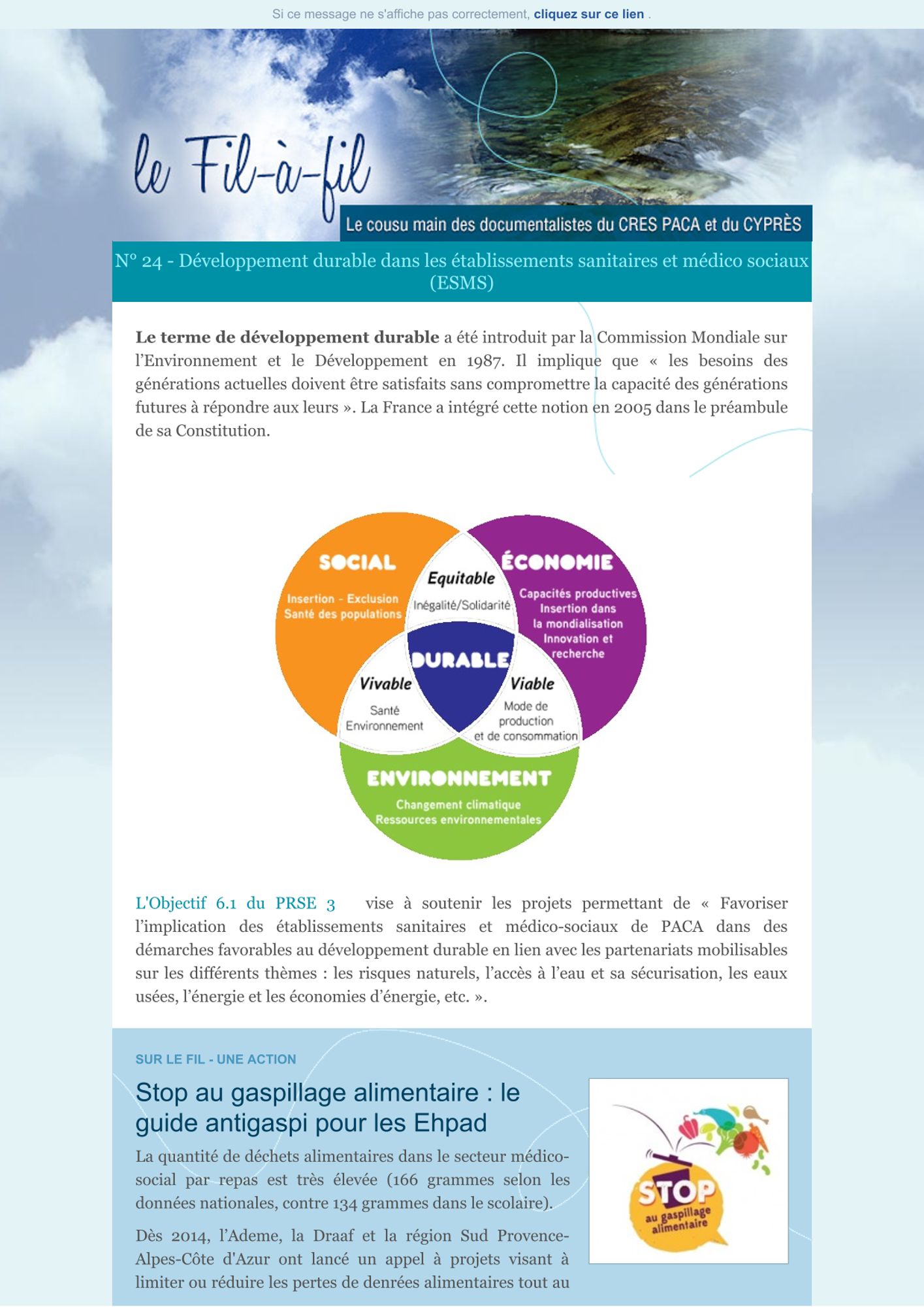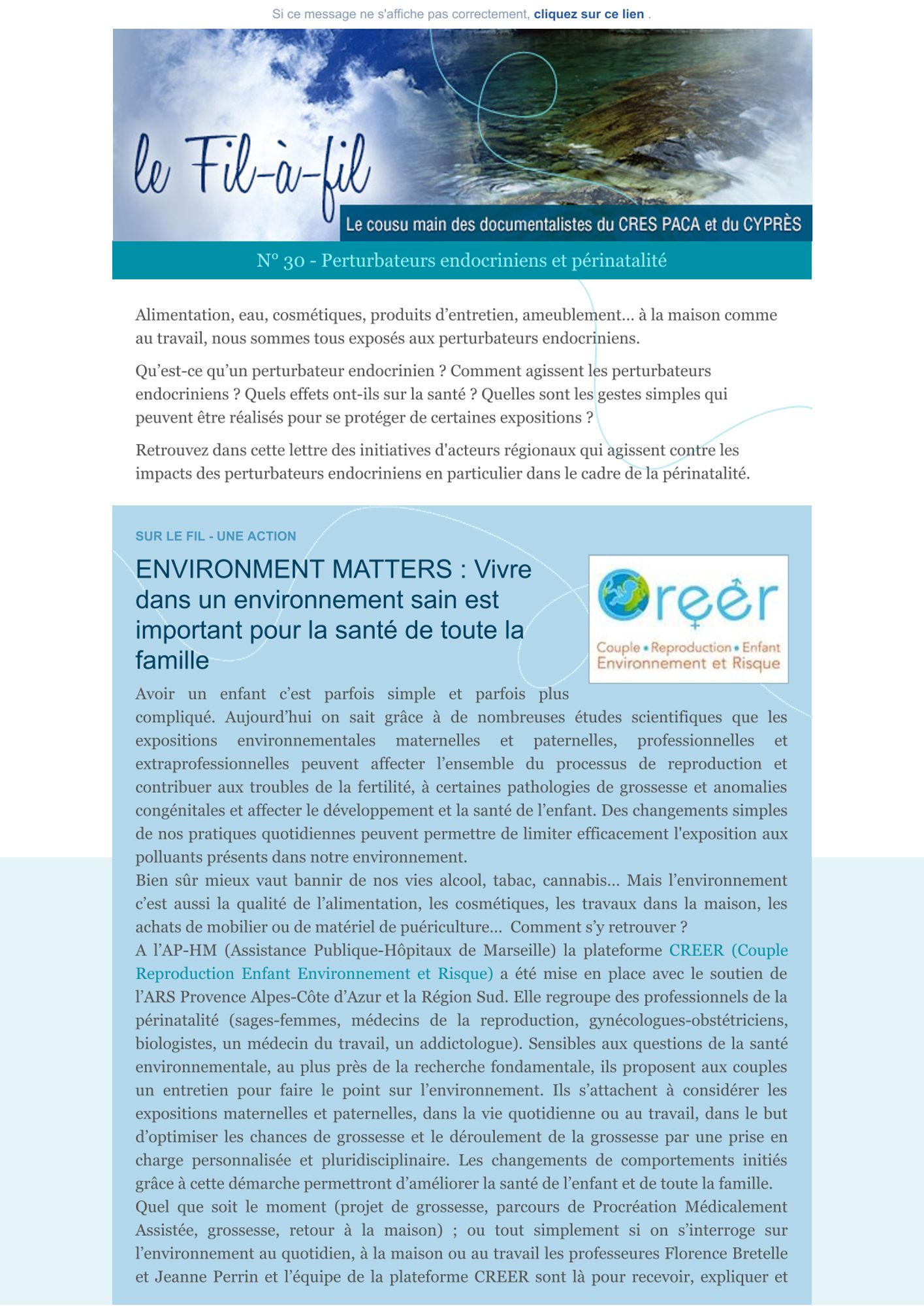 Inscrivez-vous au Fil-à-Fil, la Lettre électronique réalisée par les documentalistes du CRES PACA et du CYPRES destinée aux acteurs de la santé environnementale.