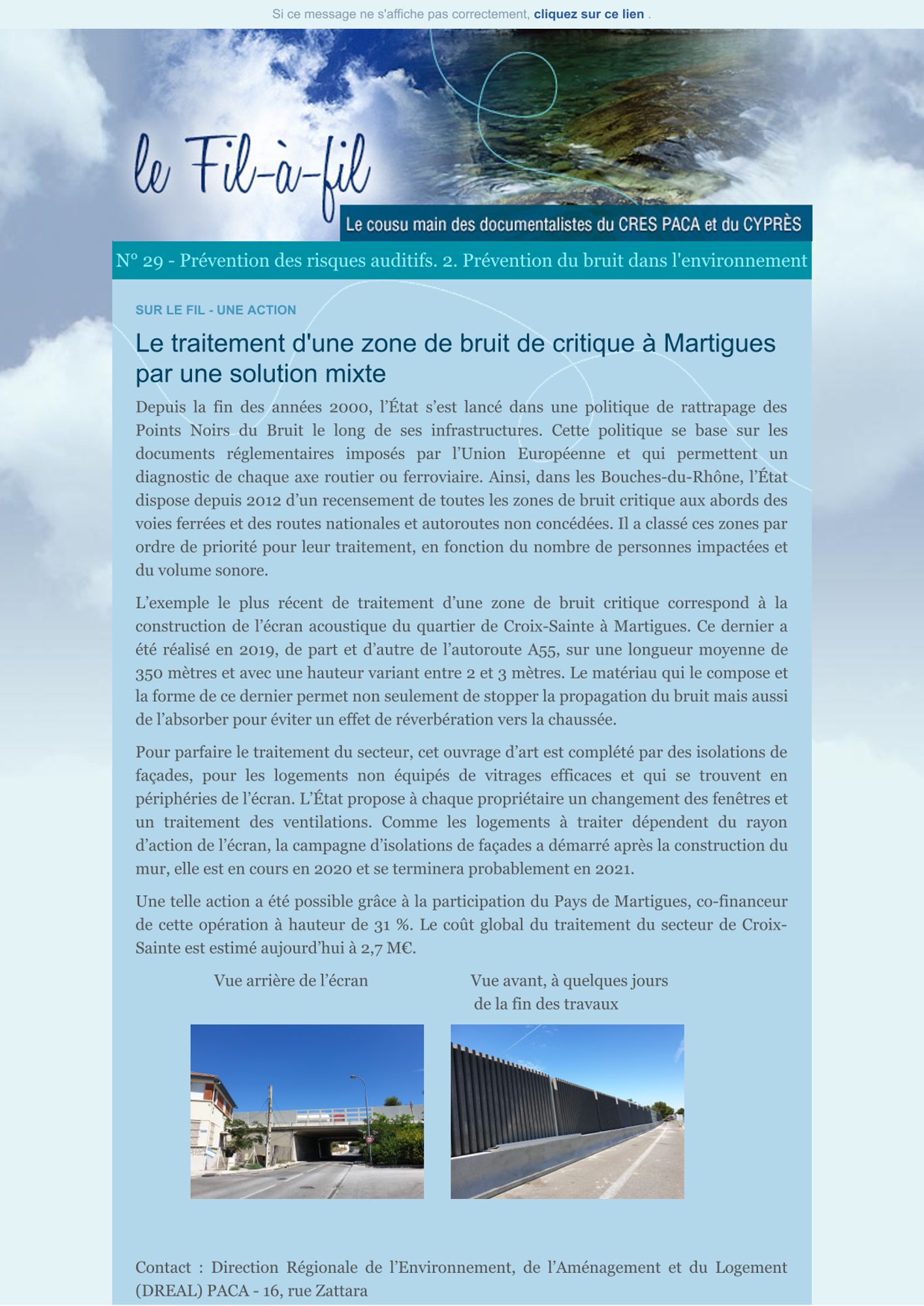 Quatre fois par an, sur un thème spécifique de la santé environnementale, les documentalistes vous proposent dans le Fil-à-Fil un coup de projecteur sur un acteur et une action de la région Provence-Alpes-Côte d'Azur et une sélection de ressources.
