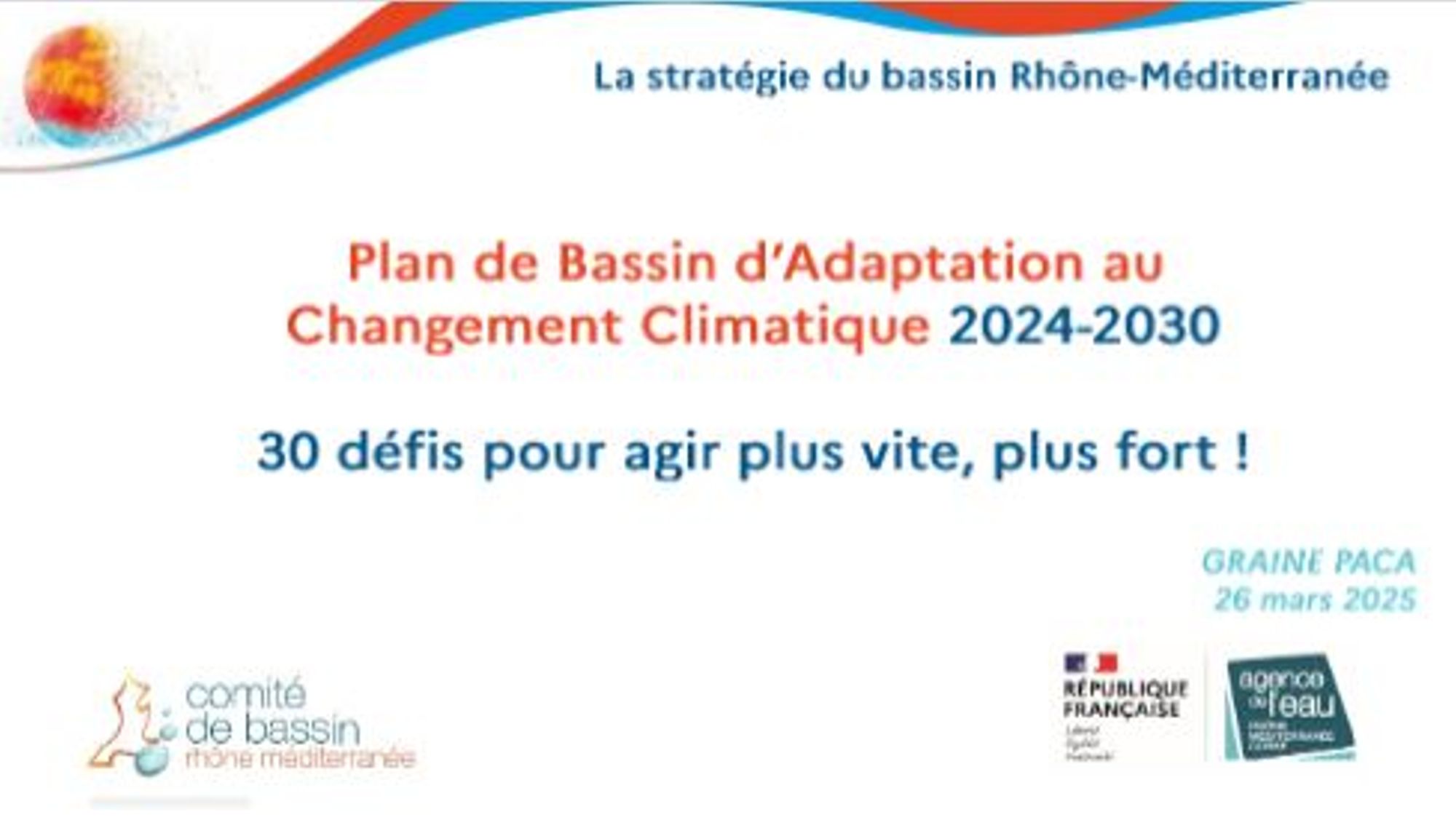 Le GRAINE Provence-Alpes-Côte d’Azur a organisé le mercredi 26 mars 2025, une rencontre thématique consacrée au Plan de Bassin d’Adaptation au changement climatique (PBACC) Rhône-Méditerranée 2024-2030, en partenariat avec l’Agence de l’eau Rhône Méditerranée Corse.