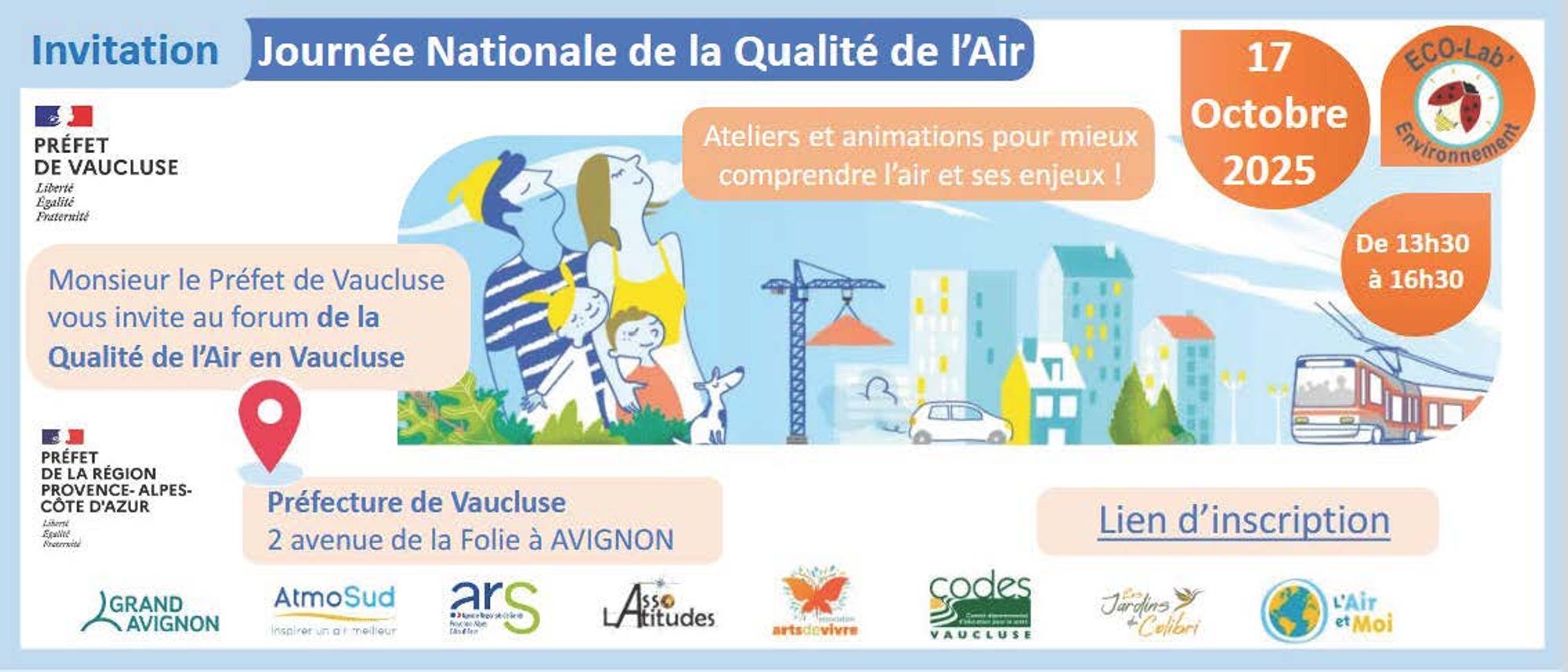Dans le cadre de la Journée Nationale de la Qualité de l’Air, un forum est organisé à la Préfecture de Vaucluse au 2 avenue de la Folie à Avignon. Des stands et animations vous attendent pour mieux comprendre l’air et ses enjeux !