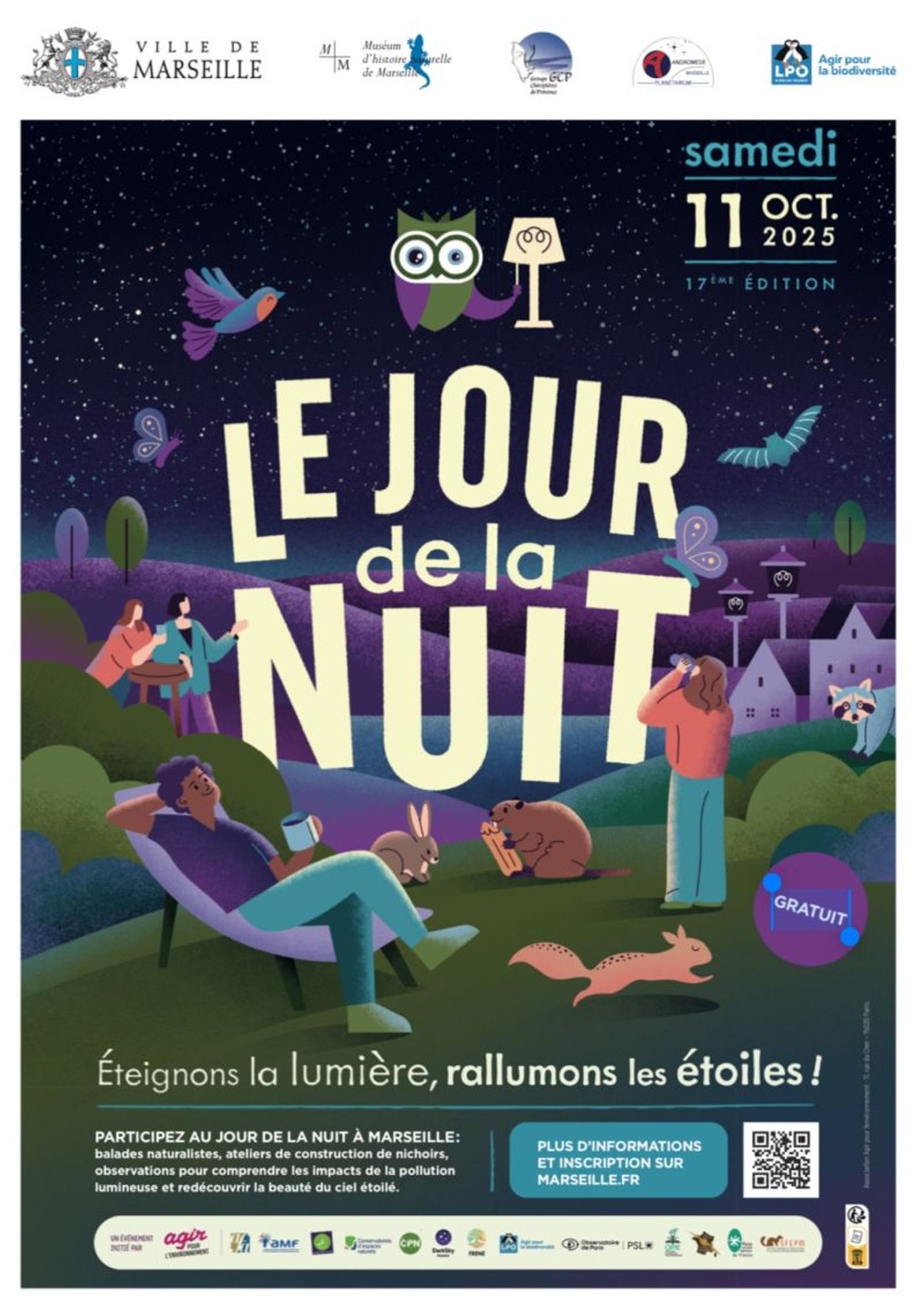 Pour cette 17ème édition, la Ville de Marseille et ses partenaires se mobilisent pour proposer des animations gratuites et accessibles à tous. Les Marseillaises et les Marseillais sont notamment invités à venir observer et écouter la biodiversité nocturne en compagnie d’animateurs experts dans plusieurs lieux du territoire.