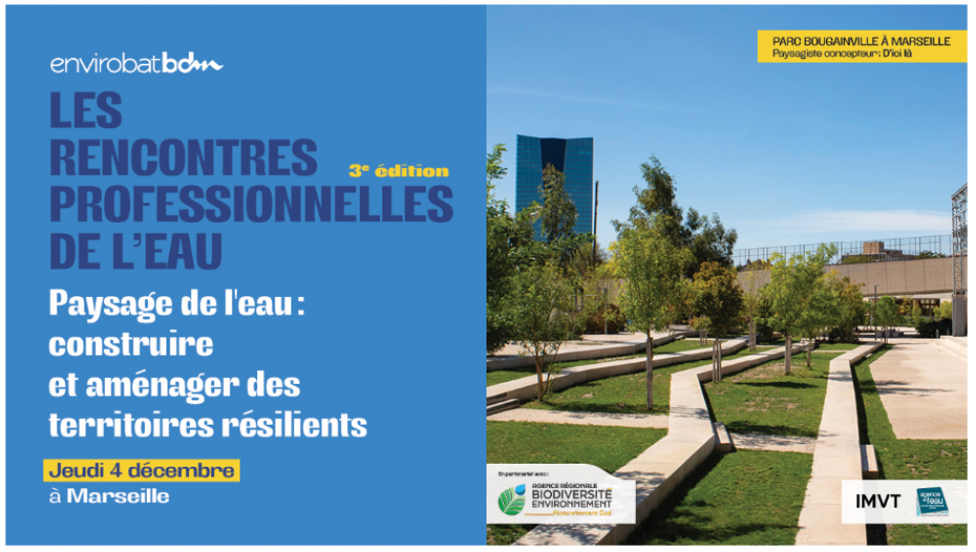 Envirobat, l'Agence de l'eau et l'ARBE vous invitent à une journée sur les paysages de l'eau, pour concevoir des territoires résilients face au dérèglement climatique une approche est de ralentir et infiltrer l'eau de pluie sur chaque espace d'un bassin versant. Des exemples pour une rivière, une parcelle agricole et le tissu urbain seront présentés.