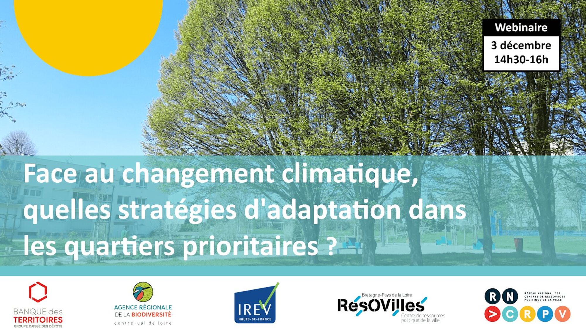 Le Réseau national des centres de ressources politique de la ville (RNCRPV) organise un webinaire sur les stratégies d’adaptation pour les quartiers prioritaires face au changement climatique.