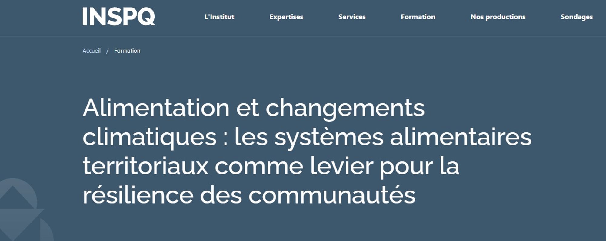 Les effets des changements climatiques sur le système alimentaire (ex. : sécheresse, inondation, coût des intrants) exacerbent les défis que doivent affronter les acteurs et les actrices du monde agricole et des différents maillons de la chaîne alimentaire, dont les mangeurs et les mangeuses. Les systèmes alimentaires territoriaux, une approche ancrée dans les réalités régionales et construite autour d’une vision partagée, sont un levier pour répondre collectivement à ces défis, s’adapter aux contextes actuel et futur et assurer un accès équitable aux aliments à tous et à toutes. Ce webinaire présente comment l’approche systémique permet de mobiliser une diversité de parties prenantes, notamment les personnes professionnelles en santé publique, et de renforcer la résilience alimentaire des territoires.